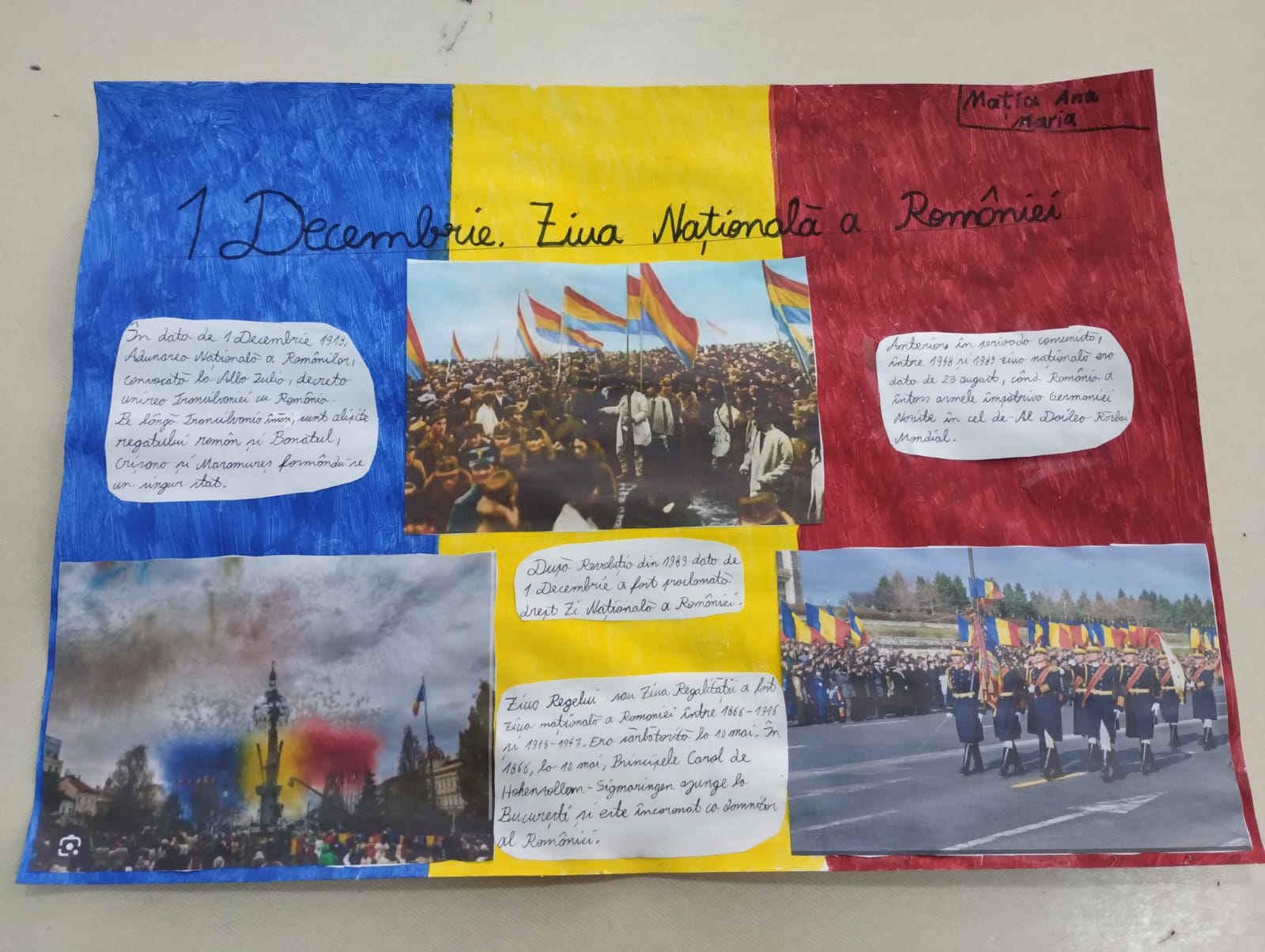 Ziua Națională a României se sărbătorește în fiecare an pe data de 1 Decembrie, este un prilej pentru a ne aminti despre importanța acestei zile, pentru a dezvolta sentimentele de iubire și respect față de țară și poporul român, dezvoltarea creativității.