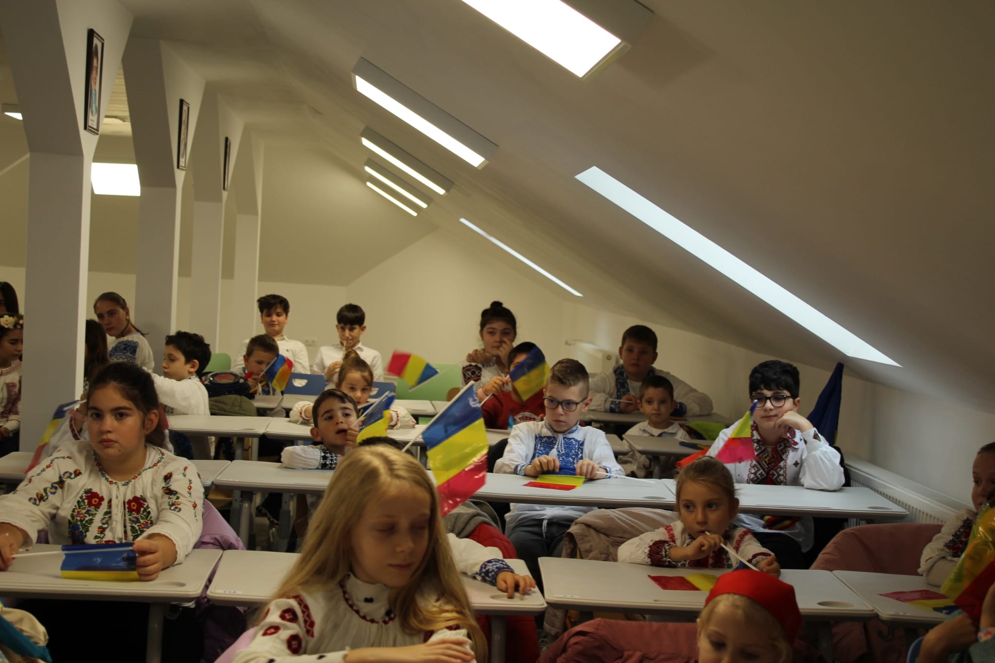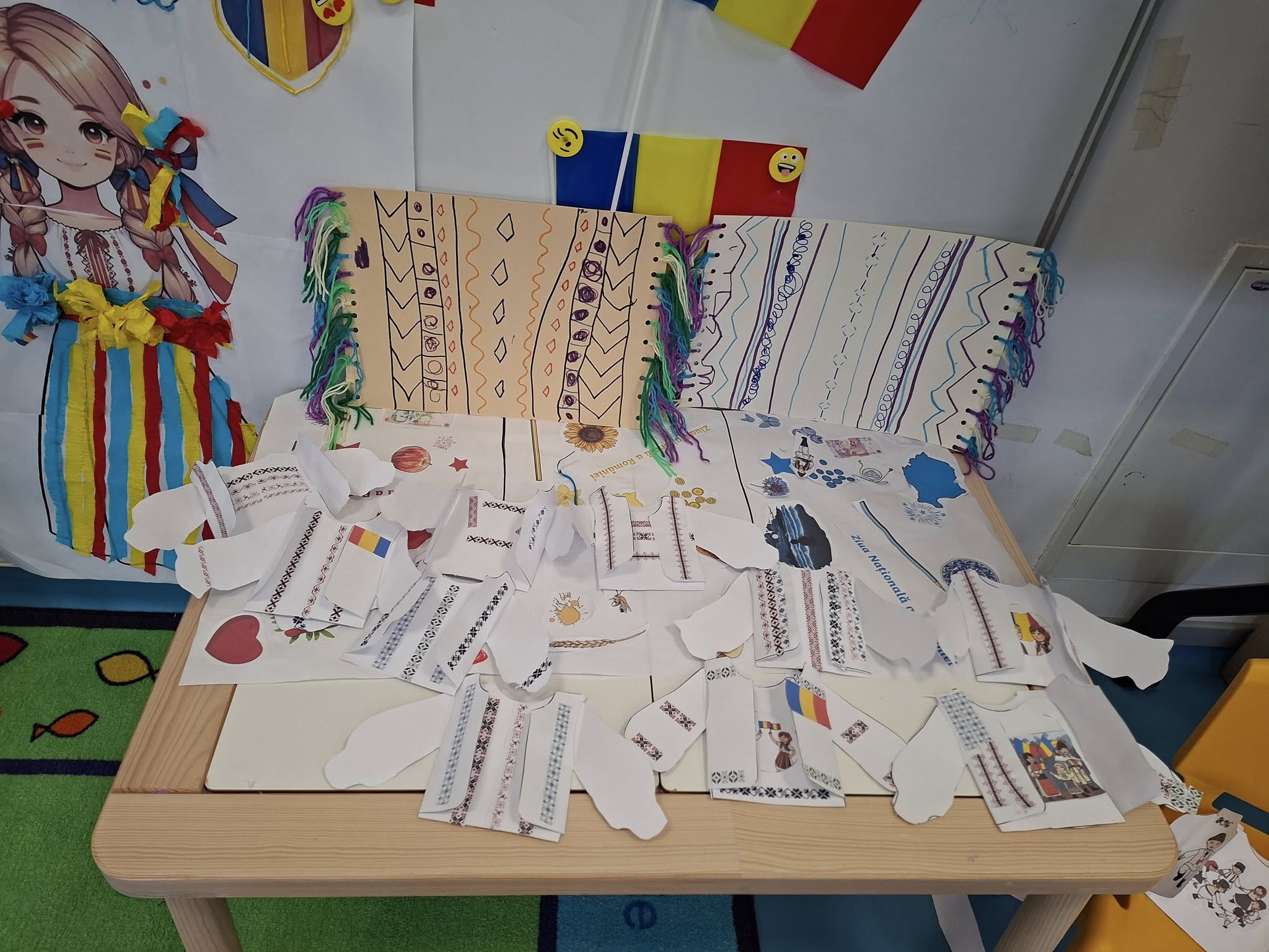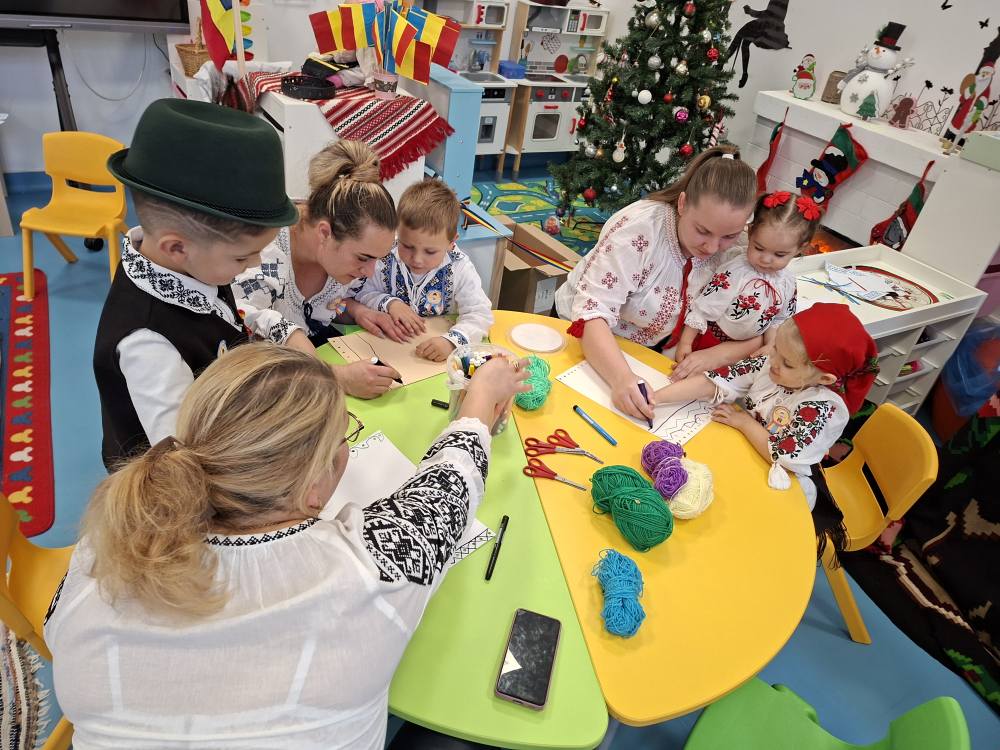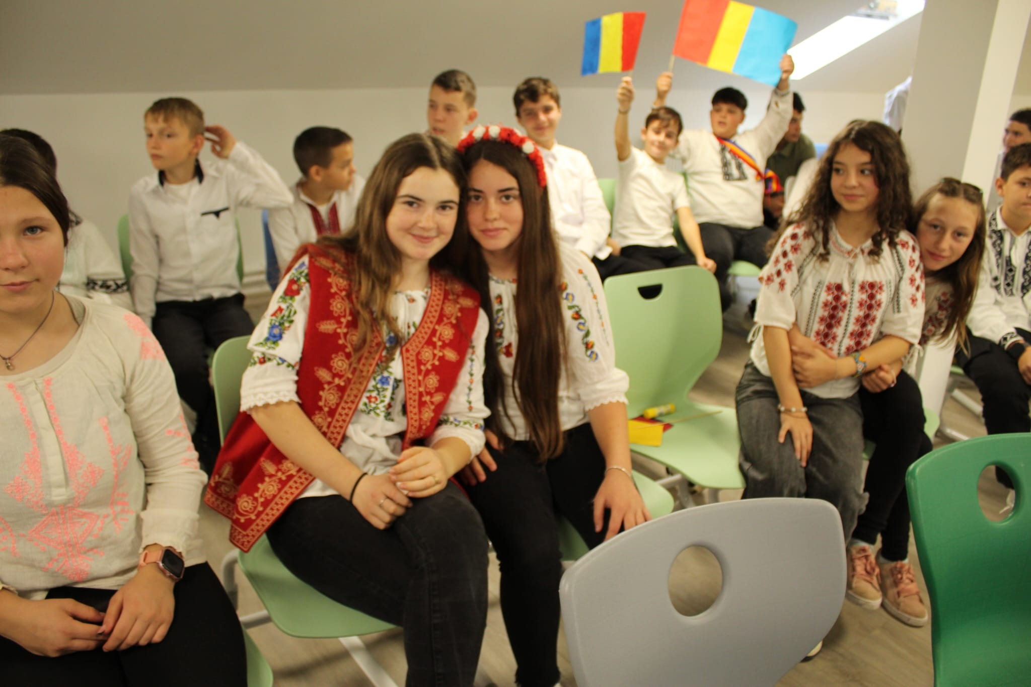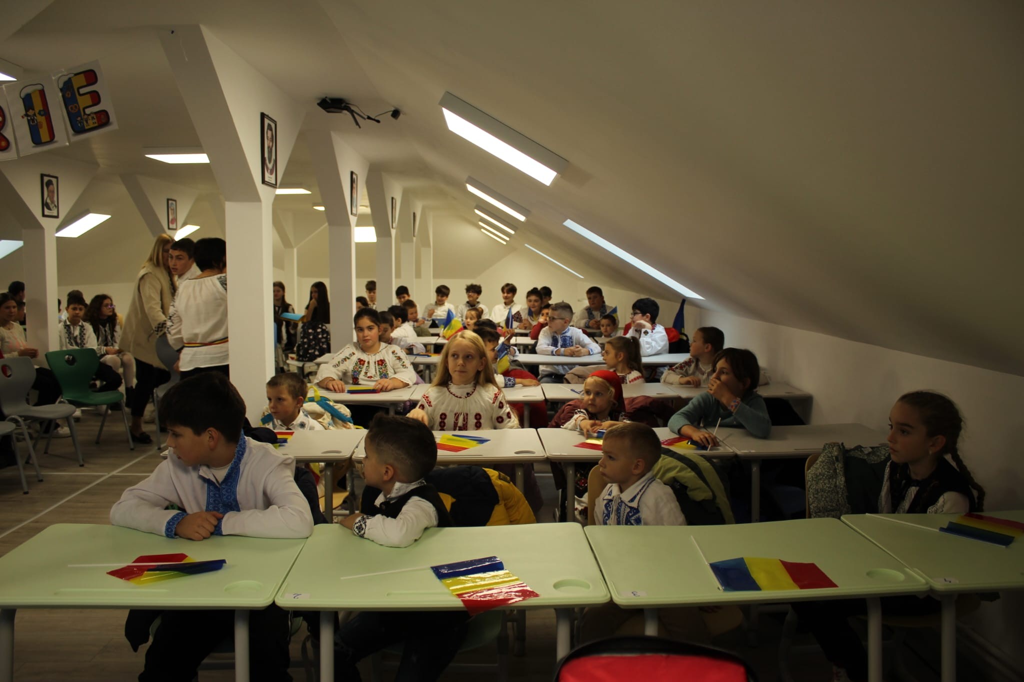 Împreună au cusut un drapel uriaș din material textil, au participat la concursuri vesele, au decupat, lipit și creat cu bucurie, iar la final au dansat Hora Unirii, purtând mândri culorile tricolorului.