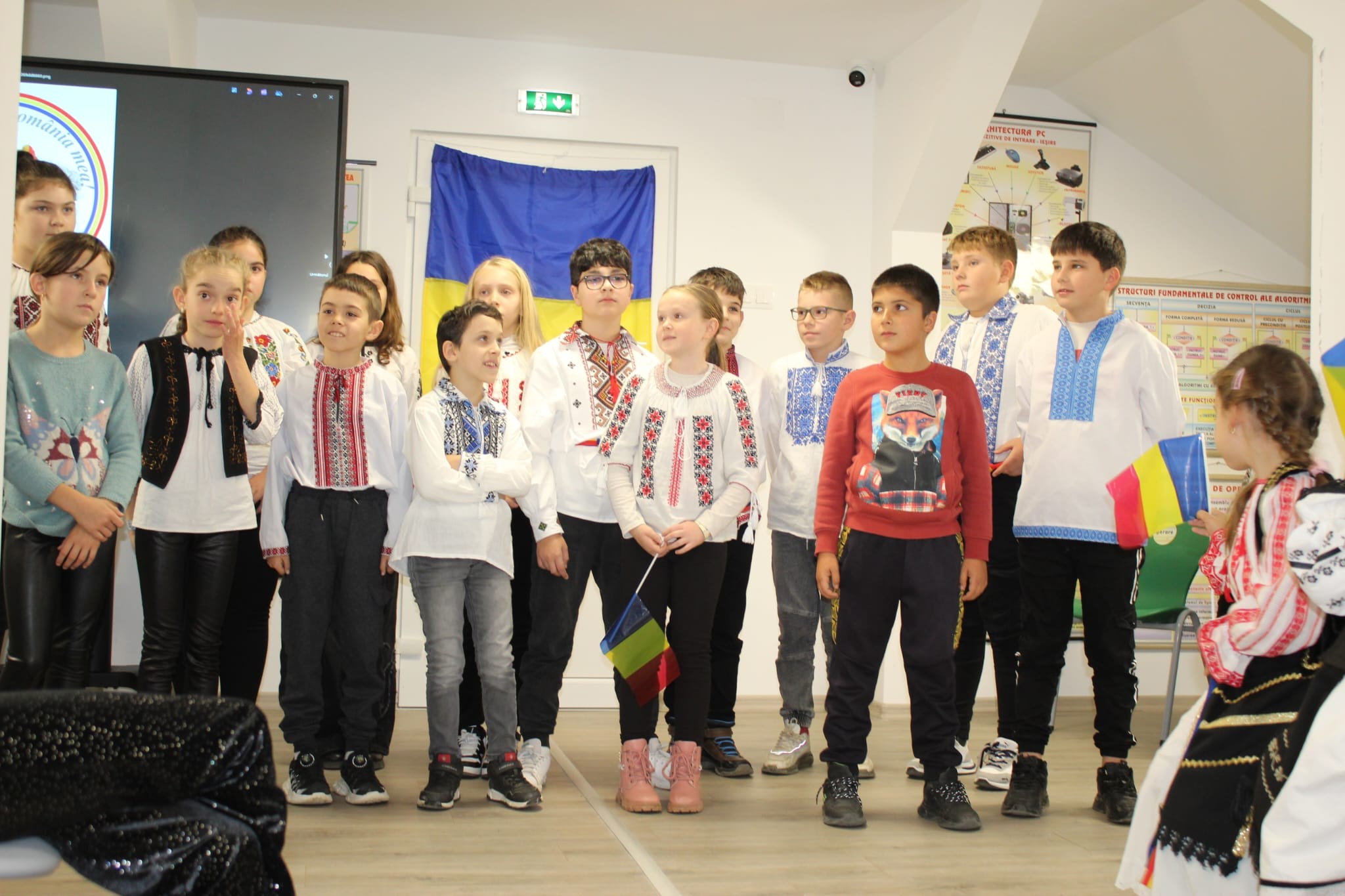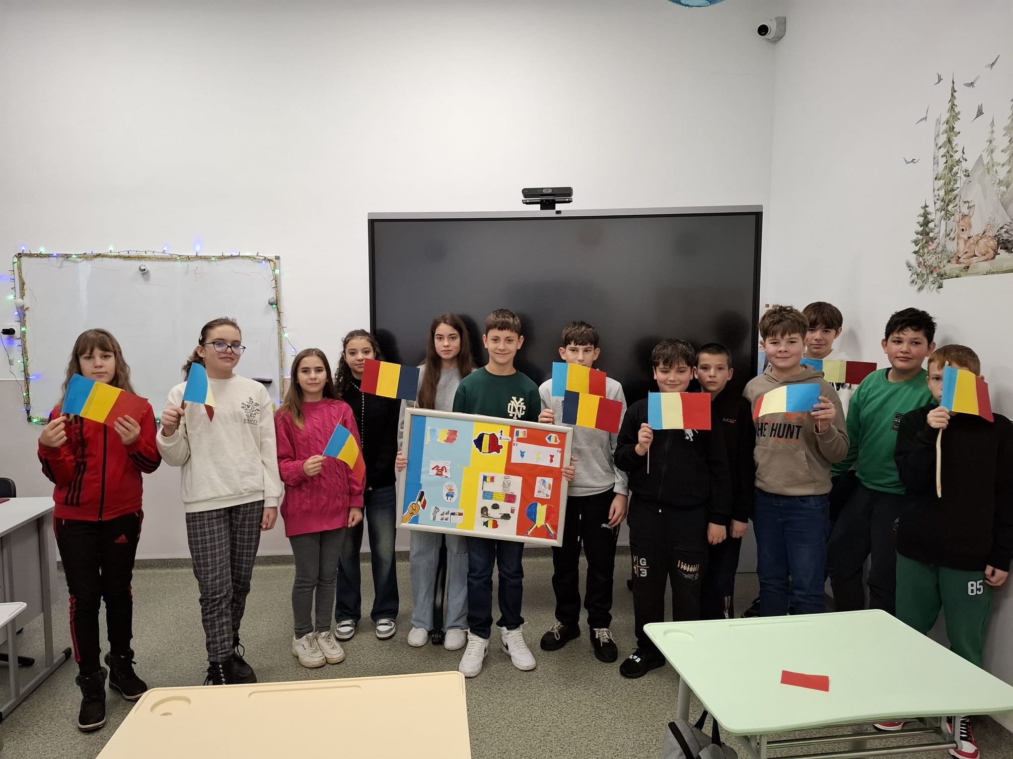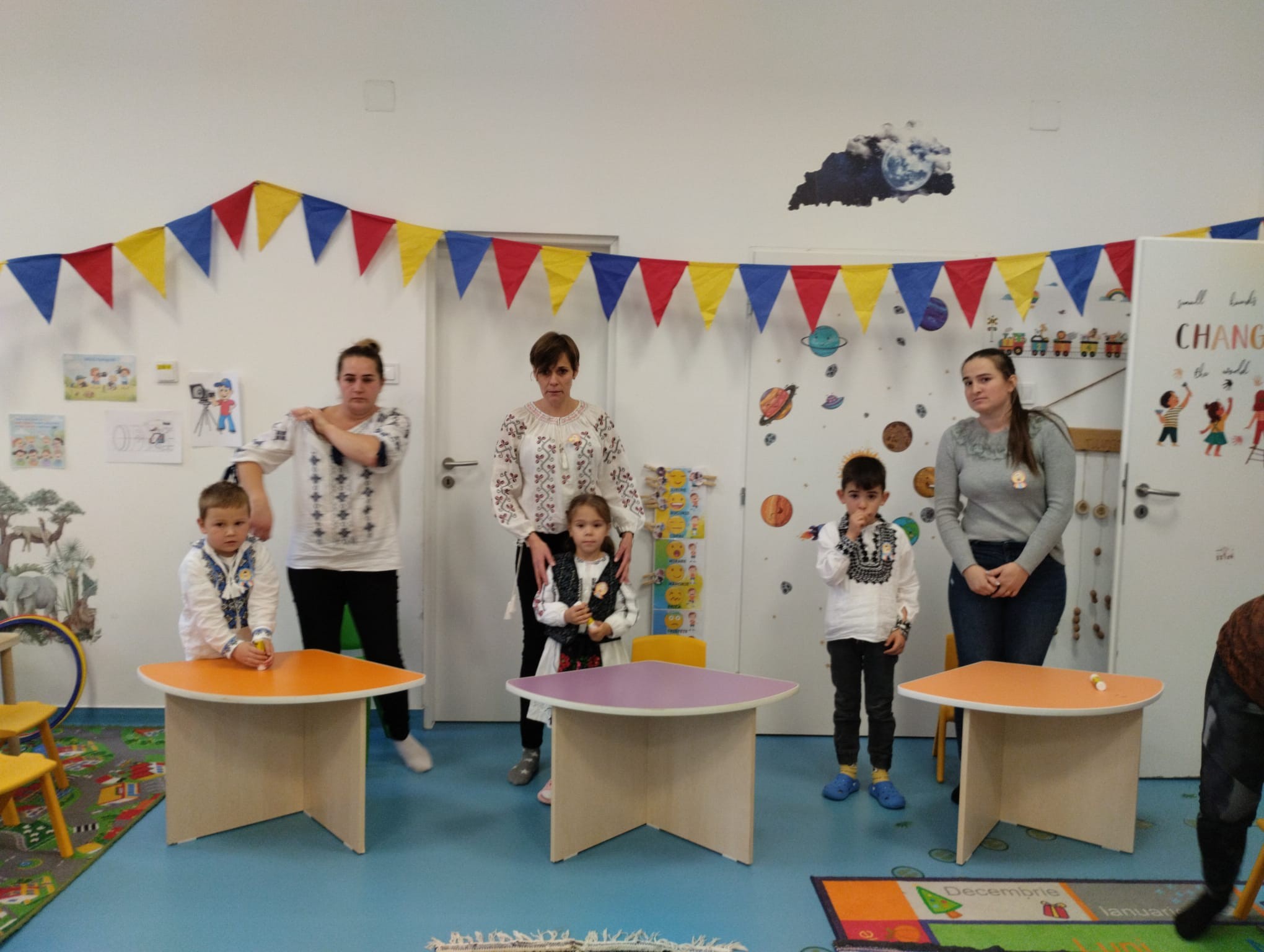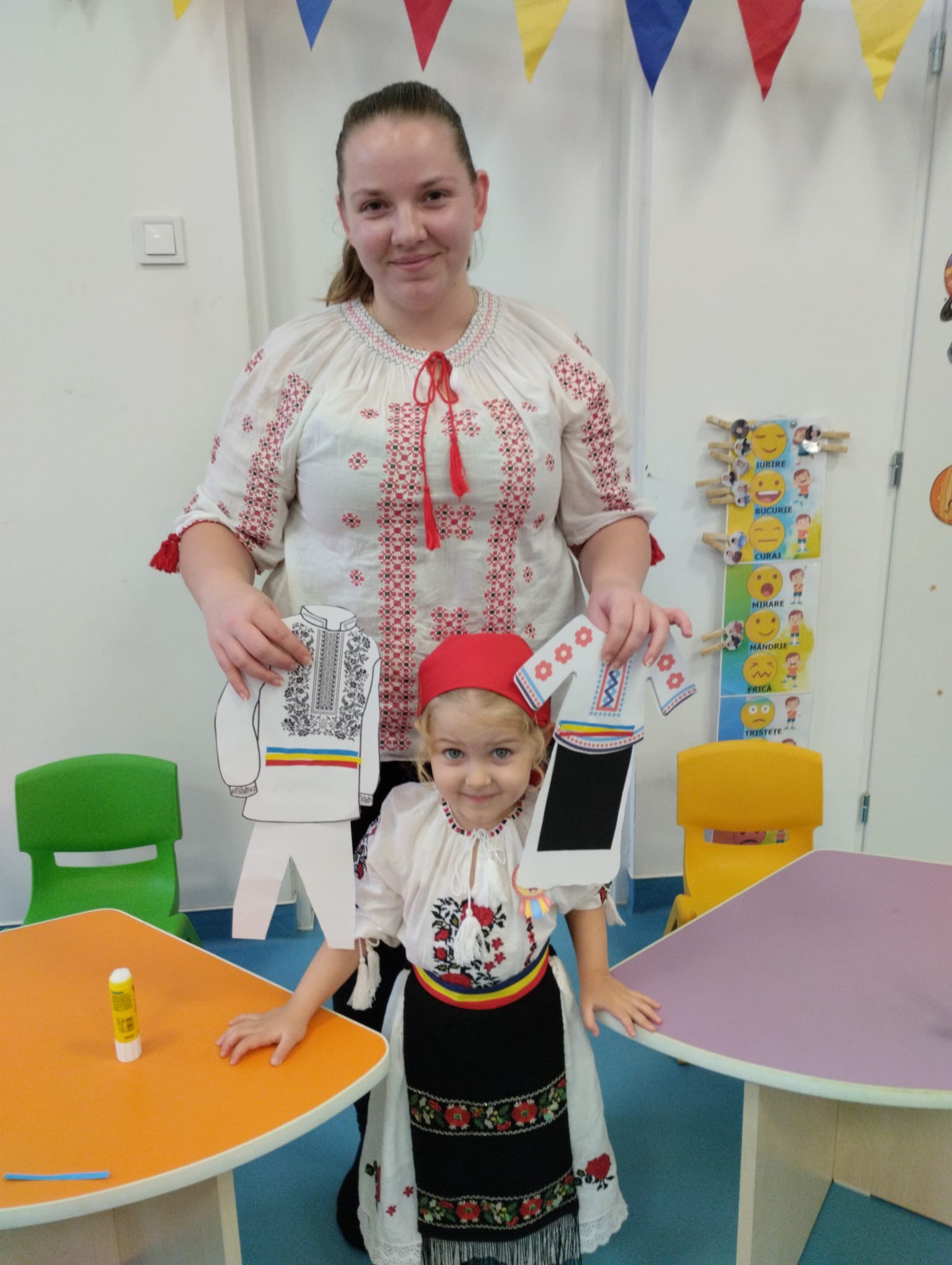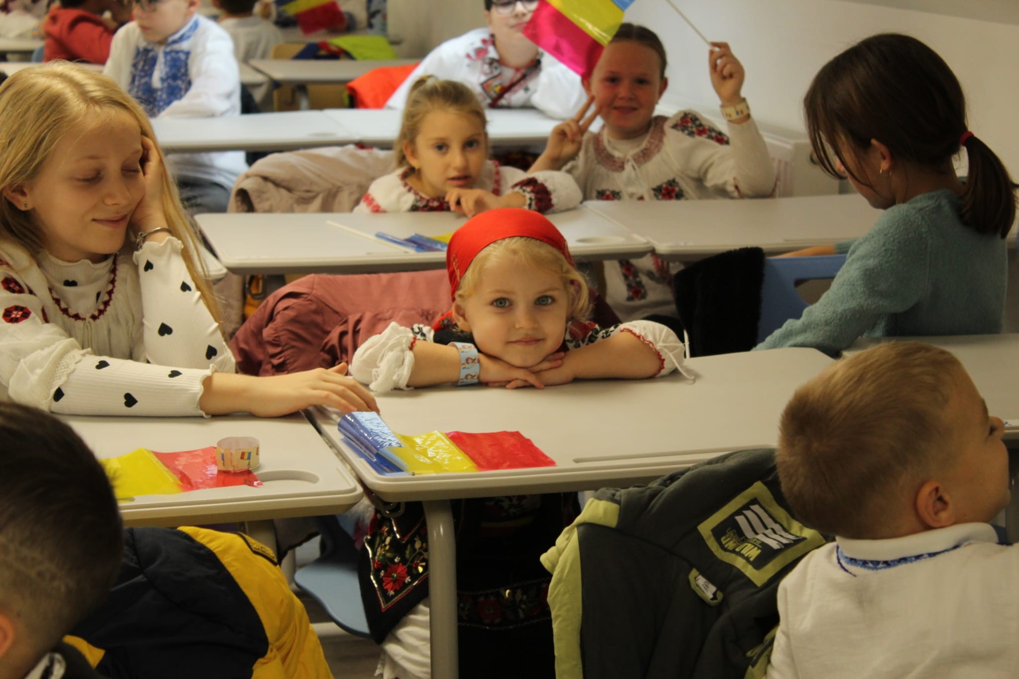 Împreună au cusut un drapel uriaș din material textil, au participat la concursuri vesele, au decupat, lipit și creat cu bucurie, iar la final au dansat Hora Unirii, purtând mândri culorile tricolorului.