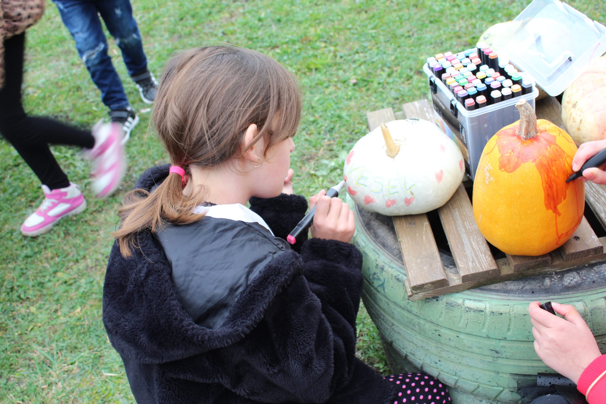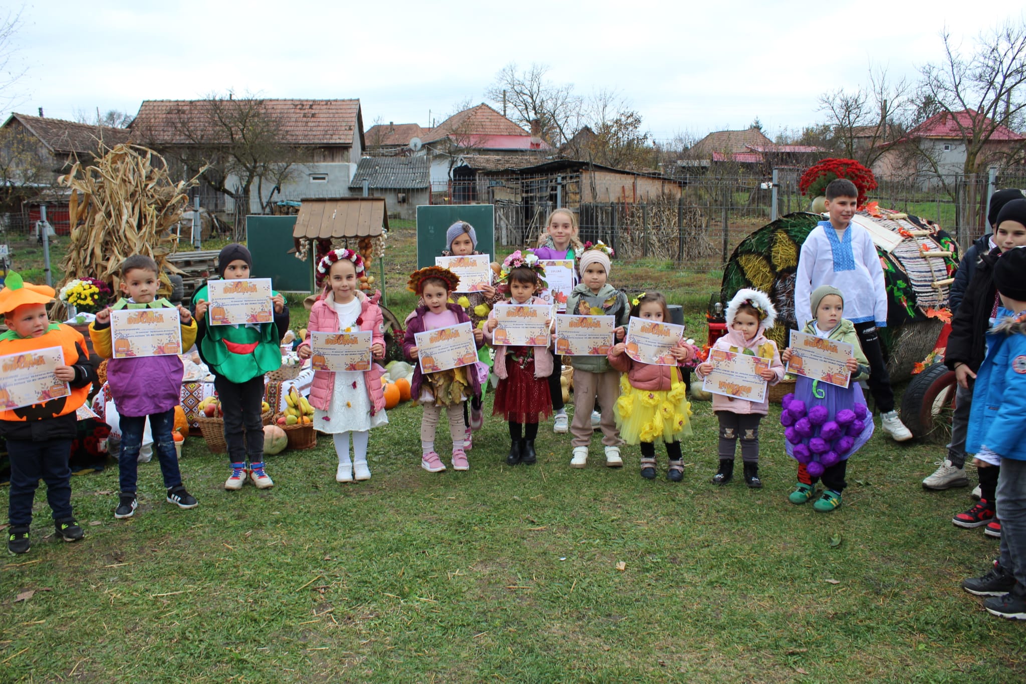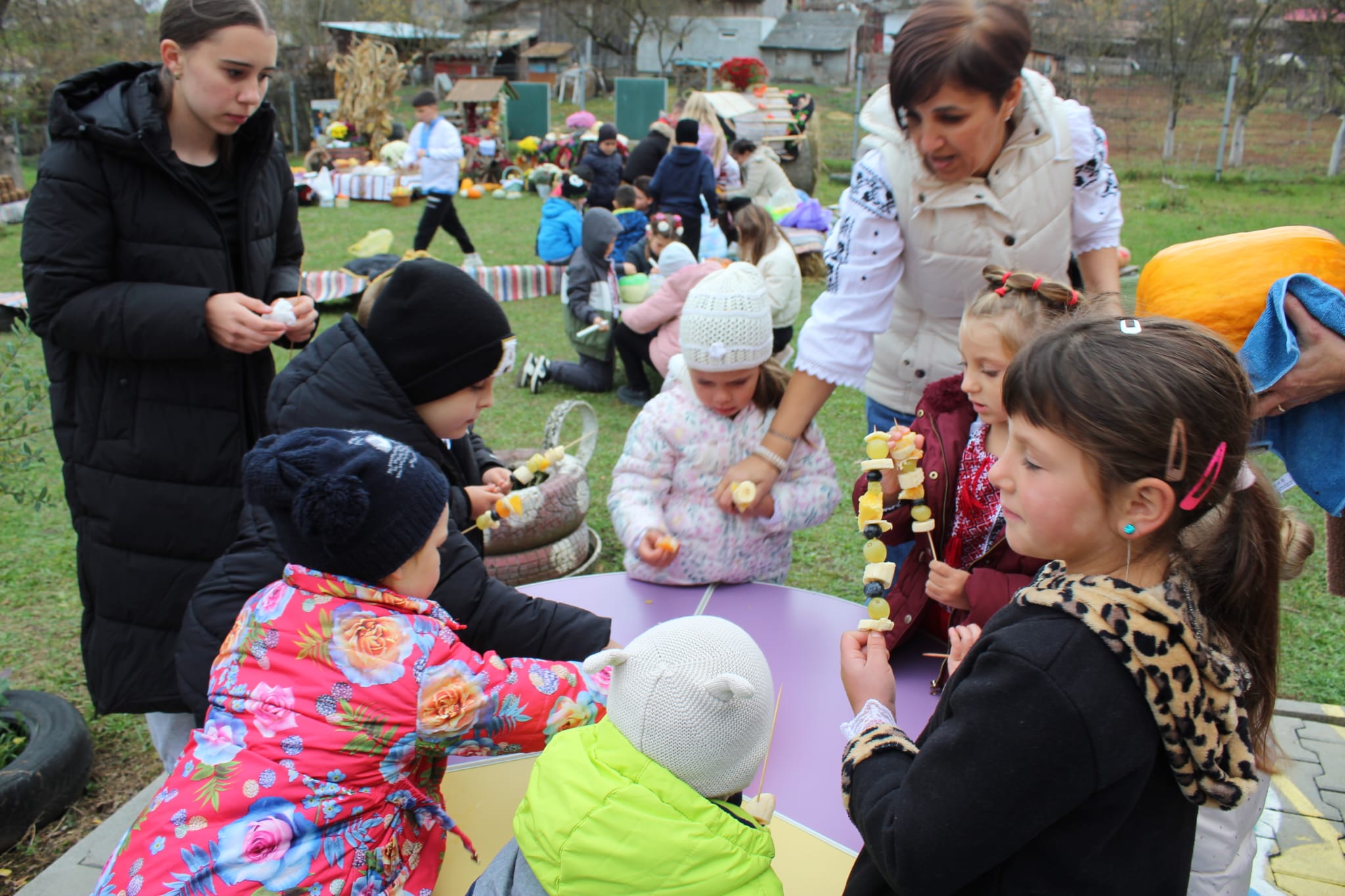 Micii participanți au dansat, au pregătit frigărui de fructe, au participat la concursuri amuzante precum Căratul bostanilor cu roaba și Căutarea fructelor buclucașe, au sfărmat porumb, s-au jucat cu dovlecii și au defilat într-un vesel carnaval al Toamnei. 🎭