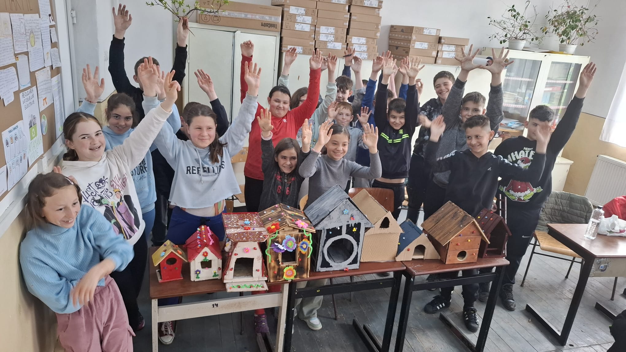 În Săptămâna Verde, elevii au realizat căsuțe pentru păsări folosind materiale reciclate și reutilizate. Prin această activitate, am învățat cât de important este să protejăm natura și să avem grijă de viețuitoarele din jurul nostru. O simplă căsuță poate oferi adăpost păsărilor și ne amintește că fiecare gest contează atunci când vine vorba de ecologie, reciclare și respect față de mediu și animale.