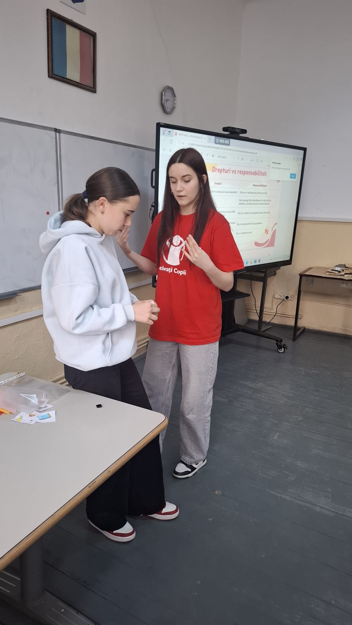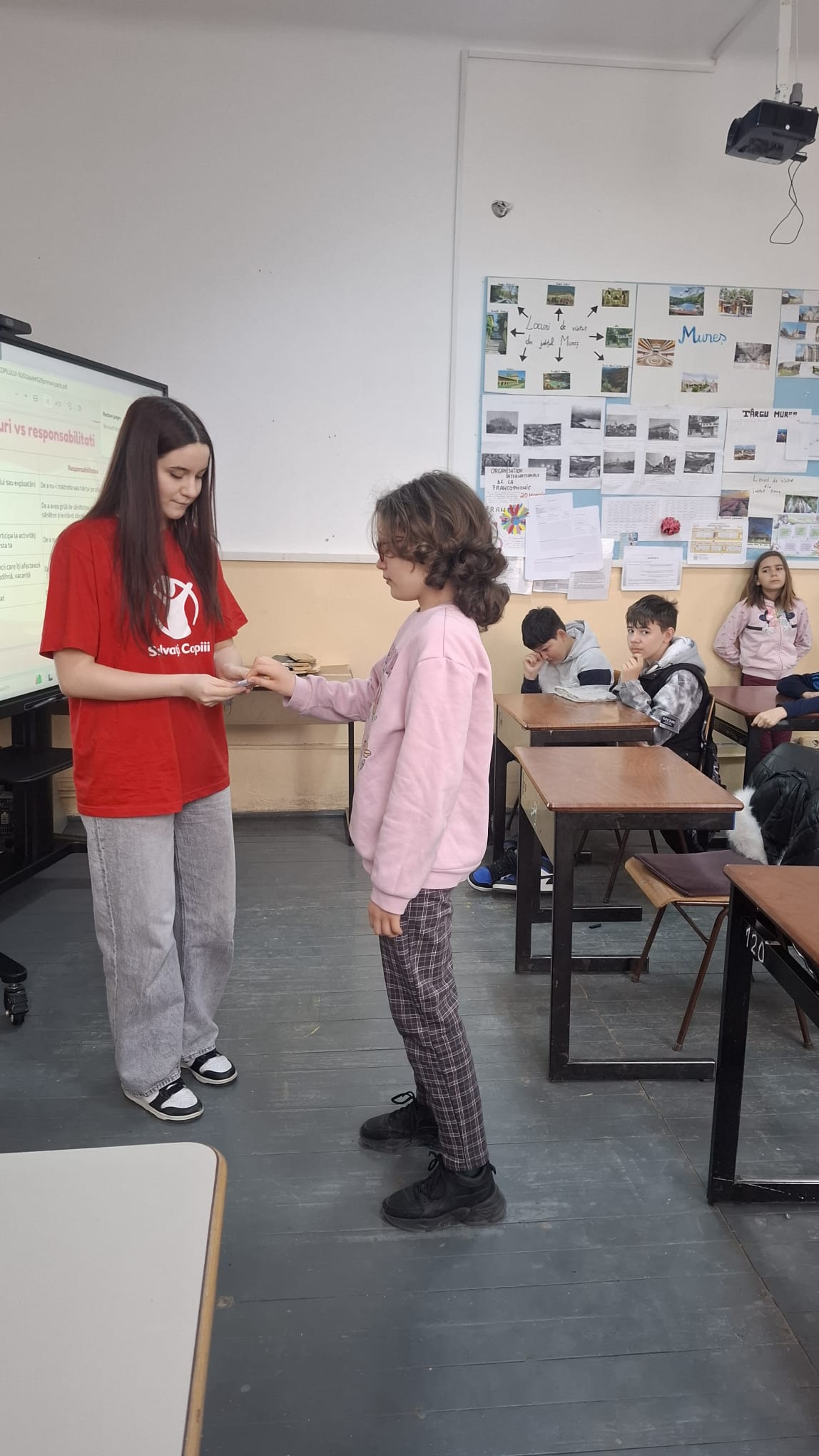 În cadrul „Săptămâna Verde”, două foste eleve ale școlii noastre ne-au făcut o vizită specială. Ele au venit din partea Asociației „Salvați Copiii” și ne-au vorbit despre drepturile pe care le avem ca copii. Am aflat cât de important este să fim respectați, să fim ascultați și să fim protejați, atât acasă, cât și la școală și în societate. A fost o activitate interesantă și utilă, care ne-a ajutat să înțelegem mai bine cum ne putem apăra drepturile și cum putem avea grijă unii de alții.