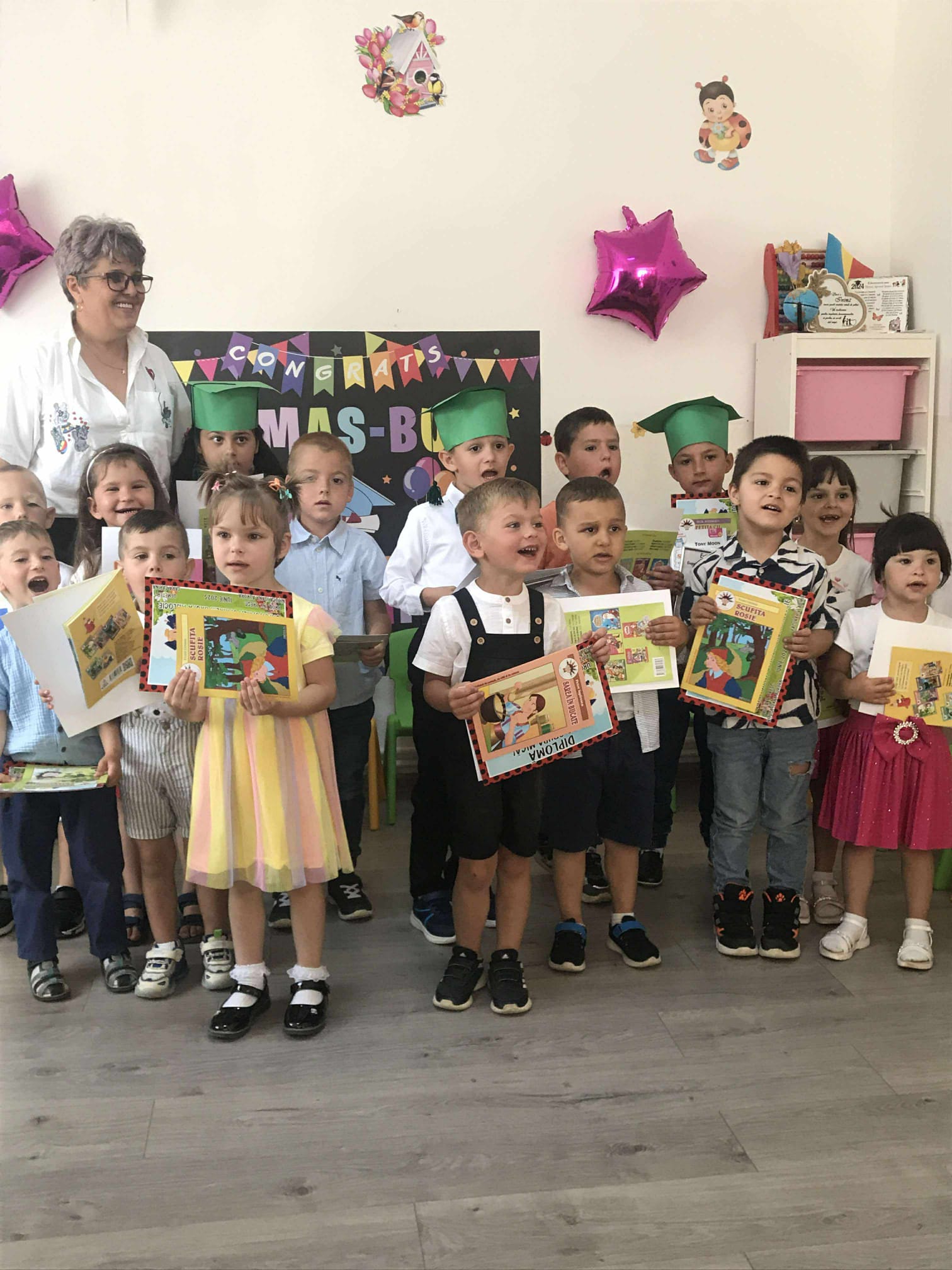Astăzi am încheiat un an frumos la grădiniță cu o serbare plină de emoție și bucurie. Copiii ne-au încântat cu poezii, cântece și dansuri pregătite cu multă dragoste. Am râs, am aplaudat și ne-am bucurat împreună de toate momentele speciale. ❤ A fost o zi deosebită, în care am văzut cât de mult au crescut și cât de frumos au evoluat fiecare în parte. Ne-au umplut inimile de mândrie!