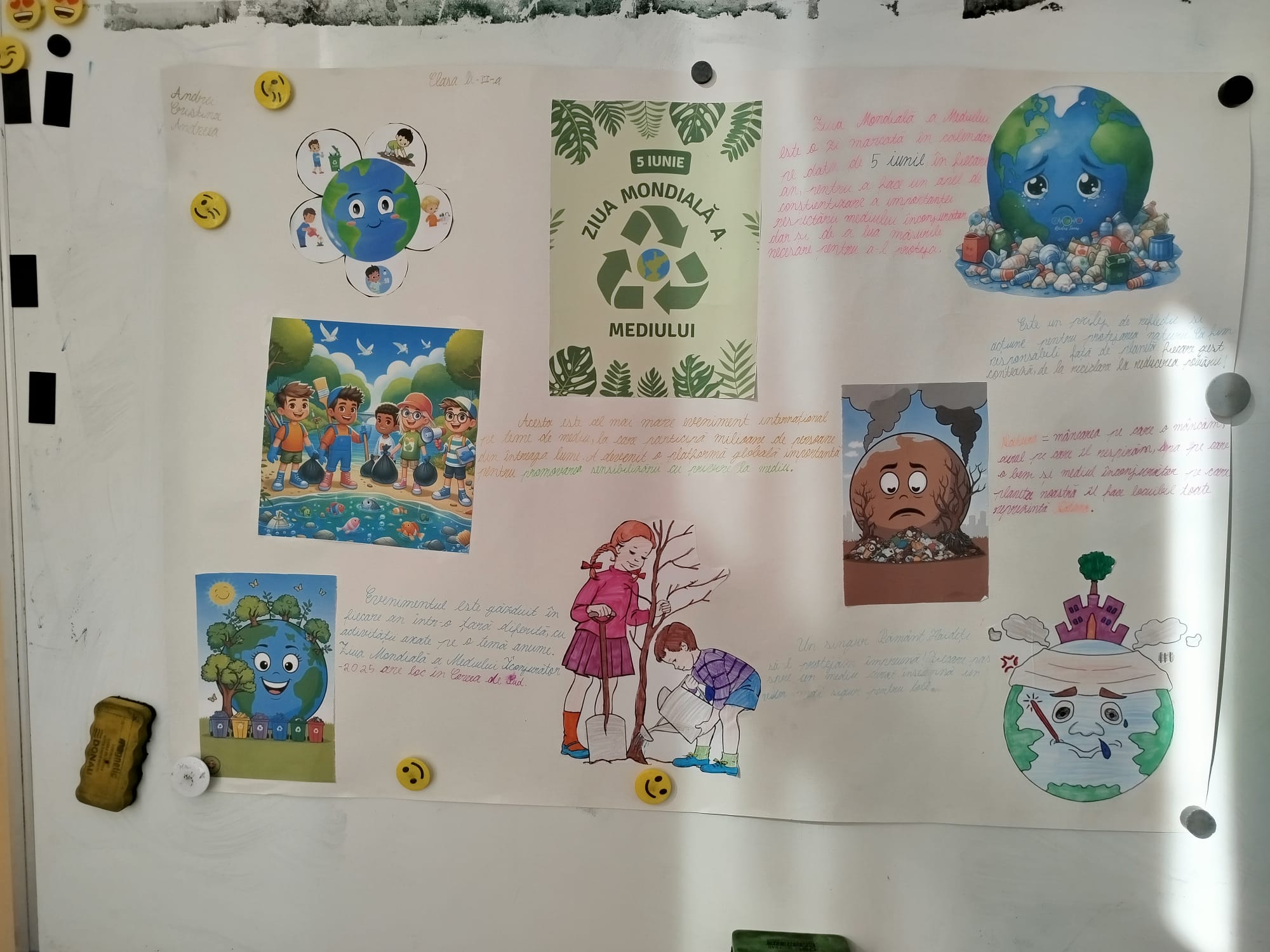 Cu ocazia Zilei Mondiale a Naturii și a Mediului Înconjurător, sărbătorită pe 5 iunie, elevii au desfășurat o serie de activități dedicate protejării mediului. Aceștia au realizat afișe și pliante cu mesaje ecologice, au participat la acțiuni de curățenie în curtea școlii și în zonele din împrejurimi, și au luat parte la sesiuni de informare și discuții despre importanța protejării naturii. Activitățile au inclus și ecologizare și plantare, contribuind astfel la înfrumusețarea spațiului verde și la conștientizarea responsabilității față de mediul înconjurător.