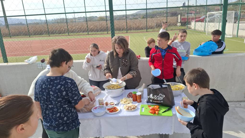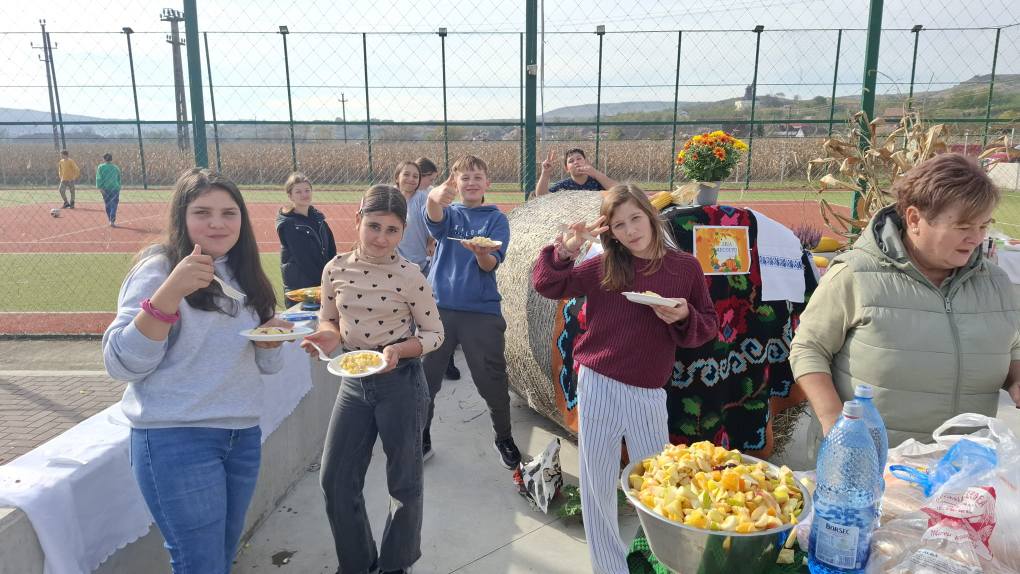 Îndrumați de doamnele învățătoare Pantea Claudia Roxana și Moldovan Viorica Aurelia, copiii au adus în curtea școlii roadele toamnei și au servit produse tradiționale pregătite cu drag.