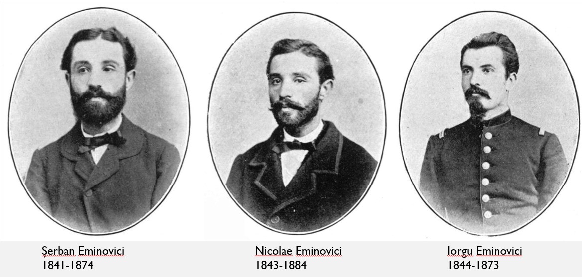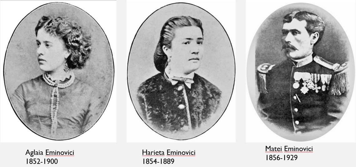 Soții Eminovici au avut 11 copii: Şerban, Niculae, Iorgu, Ruxandra, Ilie, Maria, Mihai, Aglaia, Harieta, Matei şi Vasile.