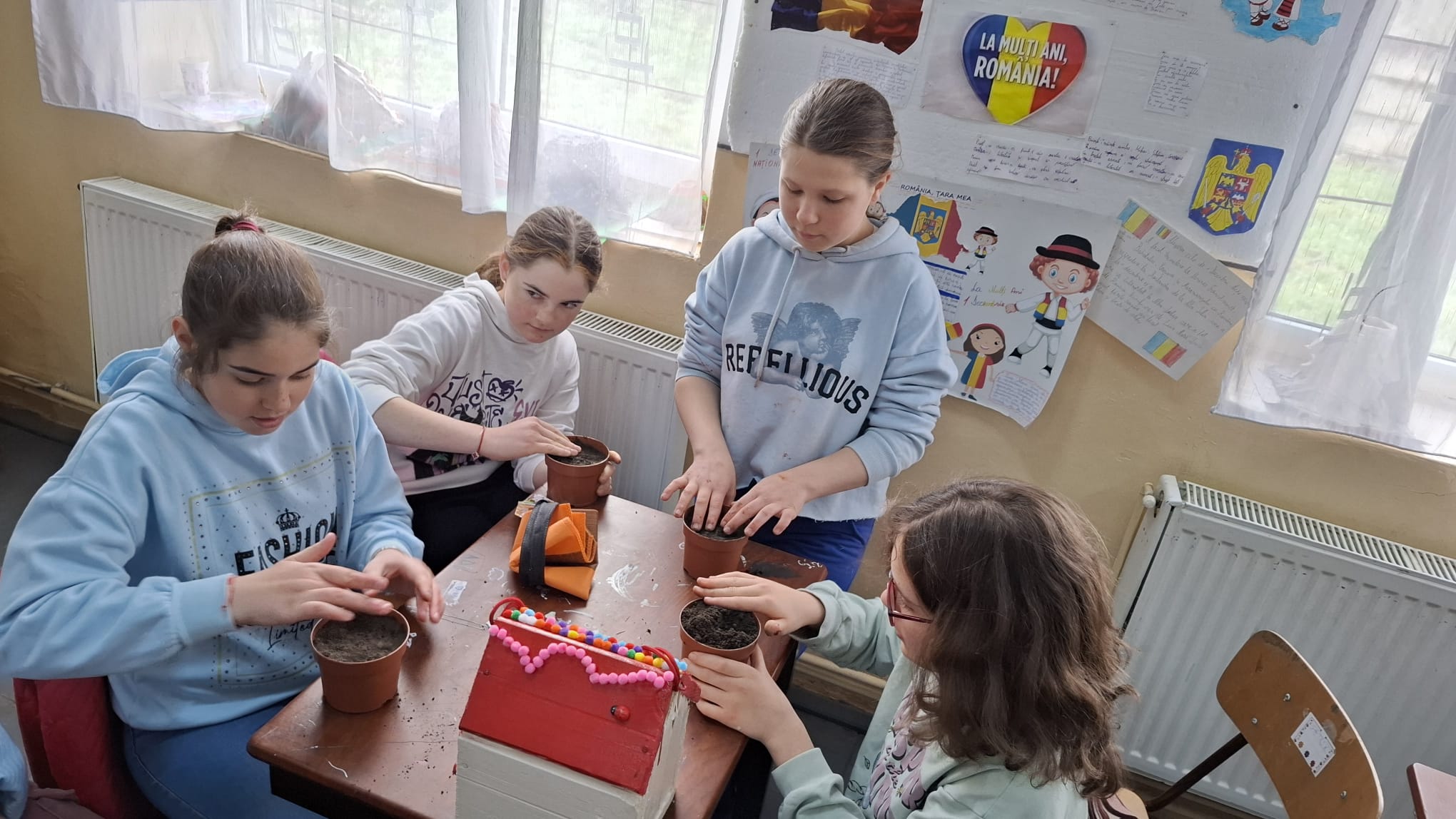 Tot în cadrul Săptămânii Verzi, am plantat flori în ghivece, pe care le-am așezat cu grijă în clase. Această activitate i-a învățat pe elevi cât de important este să avem grijă de plante și să aducem natura mai aproape de noi. Florile nu doar înfrumusețează spațiul, ci ajută și la purificarea aerului, amintindu-ne zilnic cât de importantă este protejarea mediului și grija față de natură.
