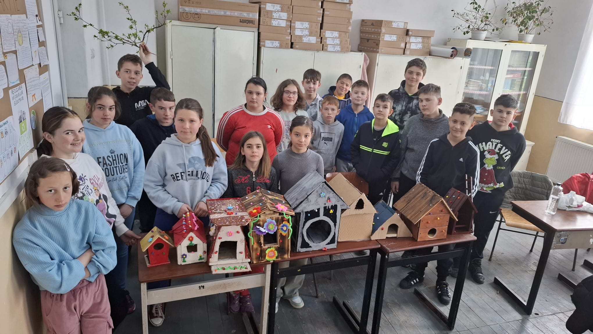 În Săptămâna Verde, elevii au realizat căsuțe pentru păsări folosind materiale reciclate și reutilizate. Prin această activitate, am învățat cât de important este să protejăm natura și să avem grijă de viețuitoarele din jurul nostru. O simplă căsuță poate oferi adăpost păsărilor și ne amintește că fiecare gest contează atunci când vine vorba de ecologie, reciclare și respect față de mediu și animale.