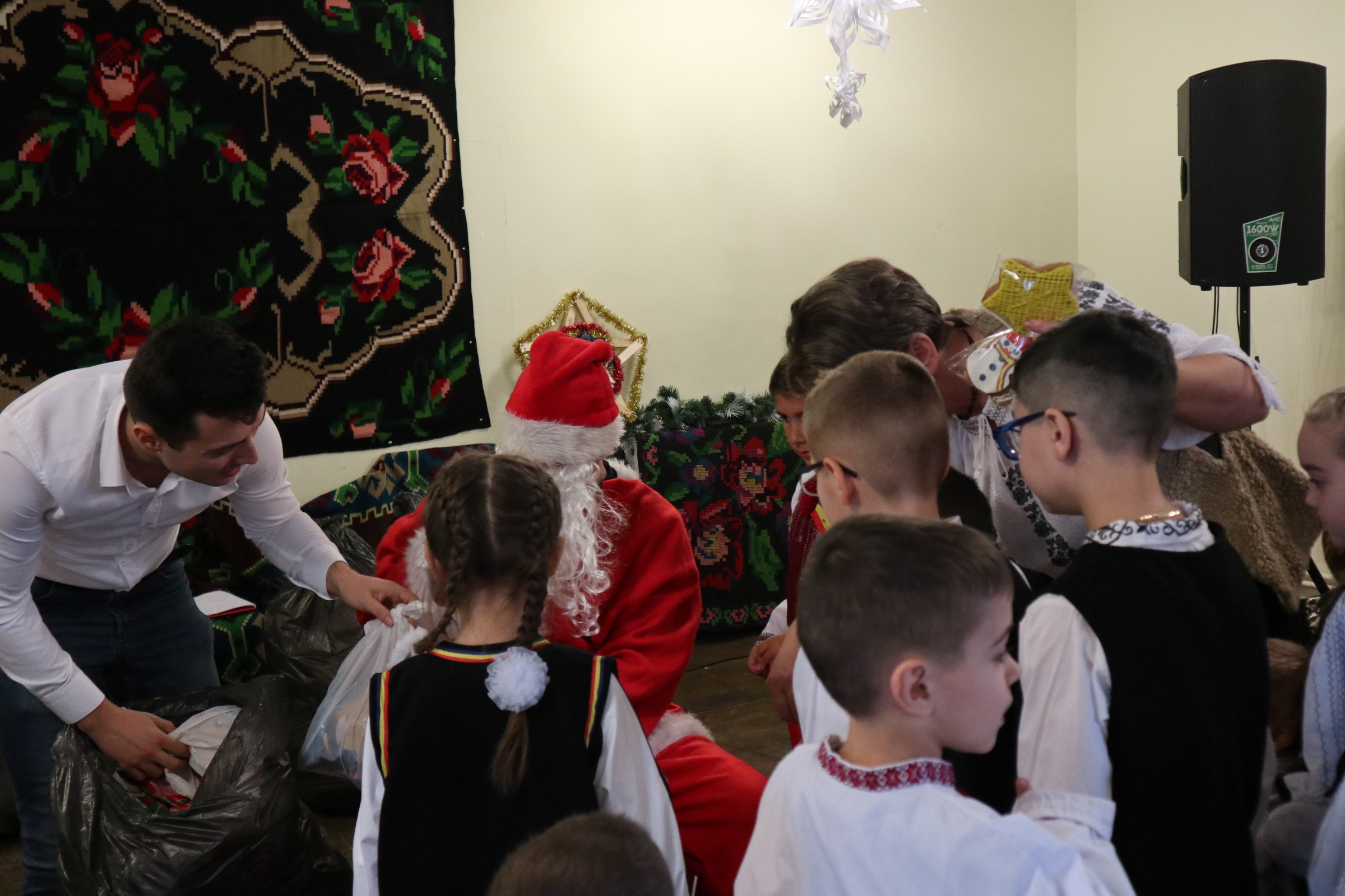 Copiii au colindat și au ornat turtă dulce, iar la final și-a făcut apariția Moș Crăciun, care a împărțit daruri tuturor.